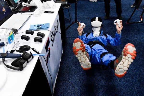 今年1 月,在拉斯维加斯举行的消费电子展上,一位与会者在佩戴 Oculus 的头戴设备