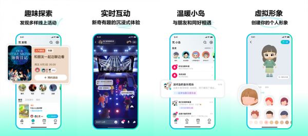 在展示的“沉浸式体验”中,用户以虚拟形象参与到演唱会观影中,并允许与周围用户交流。此外,《派对岛》还包括街心花园、温馨小屋等类似于公共社交场所和虚拟家居空间的场景。