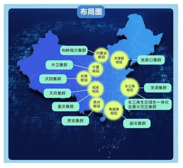 东部三大枢纽,包括京津冀、长三角和粤港澳,则集中处理人工智能、工业互联网、远程医疗等算力需求。