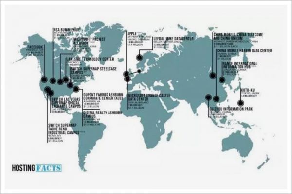 从下图也可看出,全球大型的数据中心,大多位于中美两国。