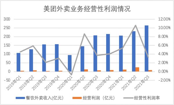 以疫情为界,可以明显看到2020年之后的餐饮外卖业务的收入有了明显跃升,不仅表现在总收入,在经营利润率方面都有了明显的提高。