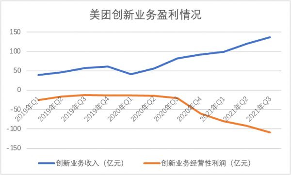 可以说,或许2021年创新业务对美团是加分项,那么2022年就可能是扣分项,这是我们尤其要警惕的。