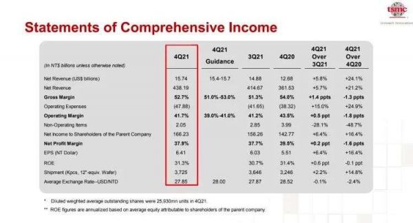 台积电给出了十分亮眼的财报,综合2021年全年,台积电营收为568.2亿美元,相比2020年台积电营收增长达24.9%。在营收稳步提升、资本支出也大幅提高的同时,台积电的毛利率变化却仍然保持平稳。