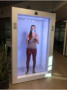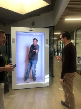 这就像一个更高级的Zoom视频通话,但不是在别人的电脑屏幕上出现一个小的视频对话框,而是将你的全尺寸肖像投射到一个全息屏幕上让他们看到,所以要实现全息投影聊天,我们必须得准备一个能够容下我们身体的特殊的设备(屏幕),来显示你正在与之互动的人的全息版本,并且你们之间还必须有一个工作室级别的摄像机,才能实现实时的全息聊天,而这些屏幕或相机的价格加起来高达75000美元。