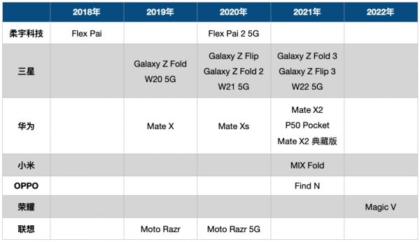 《豹变》根据公开数据统计,抛开一些厂商的“PPT折叠屏手机”不谈,2018年至今共有19款折叠屏手机问世。2021年最为热闹,共有7款折叠屏手机进入市场,其中小米与OPPO首次发布,荣耀也在2022年初推出了折叠屏手机。