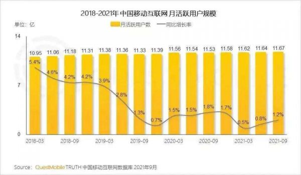 据QuestMobile今年年初发布的《中国移动互联网发展启示录》,目前中国网民总规模达11.67亿,用户规模增速稳中放缓,趋于稳定。
