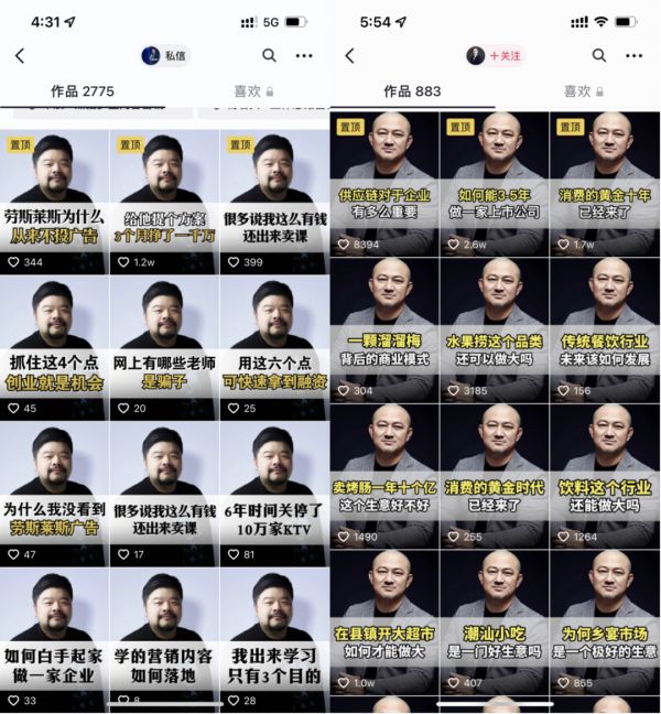 资深罗粉云欢认为,“电商学苑这个号土得不像老罗做的,韭菜味儿有点重”,他曾因为信任罗永浩的审美而购买过初代锤子手机,目前账号发布的套路化剪辑模版和缺乏干货的讲课片段,并不能满足他对“罗老师”这个形象的期待。