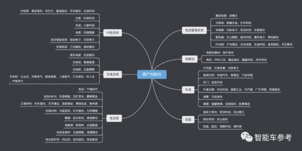 整体来看,国产特斯拉背后的本土汽车元器件供应商,涵盖新能源汽车三电、整车冲压磨具、底盘、内饰、中控等几乎全部子系统。