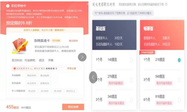 若有些职位需要长时间跟老板聊天的话,发布职位“畅聊版”则要比基础版再贵上近一倍。