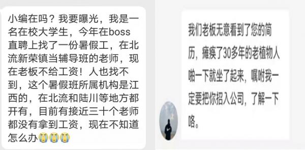 根据微博网友爆料,今年“王欢”在BOSS直聘中找到一份暑假工的工作,在北流新荣镇当辅导老师。