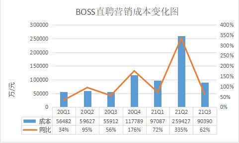 BOSS直聘在2021年第三季度费用为9.03亿元,较上一季度的25.94亿元下降64%。