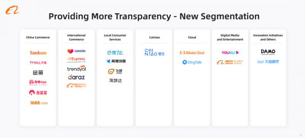 阿里巴巴集团新的分部划分情况