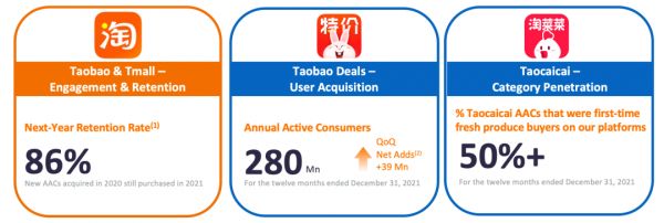 一项数据可以反映集团在这方面的成果:淘宝天猫2020年自然年的年度活跃消费者,在2021自然年的留存率高达86%。