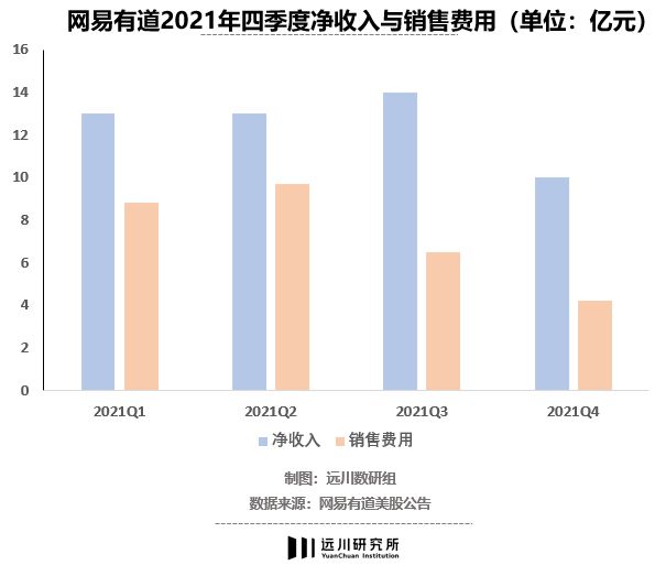 体现在财报上,有道2021年四个季度的营销费用分别为8.84亿,9.73亿,6.5亿,4.21亿,这导致一季度和二季度甚至出现了亏损。