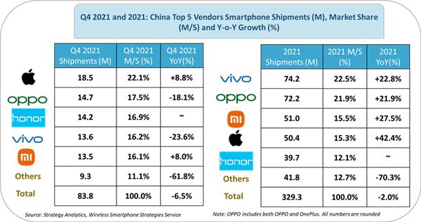 以支持高清视频发送、播放为例,想要在2022年年初完整地体验到这项更新,就需要使用一部近两年上市的新款iPhone,也就是iPhone 12系列或iPhone 13系列。然而根据Strategy Analytics等机构数据, 苹果在中国的5000万年销量仅占到市场总体的不到1/6,大部分用户并没有那么好的手机。