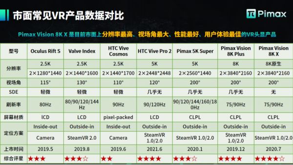 VR产品数据对比