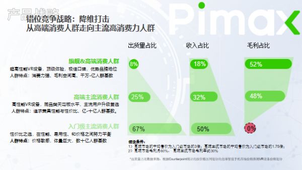 在2022年小派科技的线上媒体会上,小派科技CEO任攀也提到了公司未来的错位竞争战略。未来公司会从高端消费人群逐渐向主流高消费力人群拓展。这部分消费群体体量更大,消费能力也不差,是未来公司需要开拓的市场。他表示,VR市场本质上是全球化市场,局限在某个区域是不可行的。小派的定位不是做区域差异化,而是通过产品差异化与Meta等公司进行有效地错位竞争。