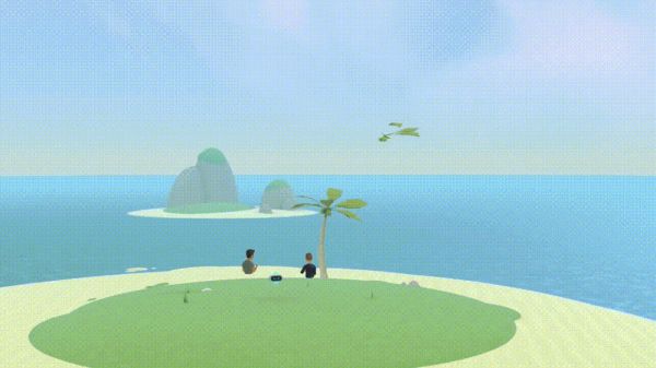 1.语音生成场景的Builder Bot。在录制的视频中,我们可以看到小扎和一位同伴在虚拟的环境中,通过一系列的语音指令让本来单调的虚拟背景中,增加云朵、树木、小岛、桌椅等虚拟物品,随着语音指令的结束,一个相较丰富的虚拟场景建立了起来。不过现在的Builder Bot只是简单的demo展示,更加复杂的3D环境的生成需要时间与更深的研究。