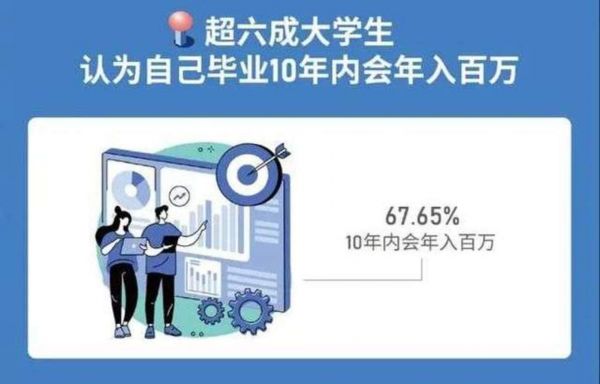 不过,面对不太乐观的现实,00后的年轻人依然显得空前“自信”。2021年《中国青年报》对首批00后应届毕业生做过一份就业调查,有超过六成大学生认为自己毕业10年内会年入百万。