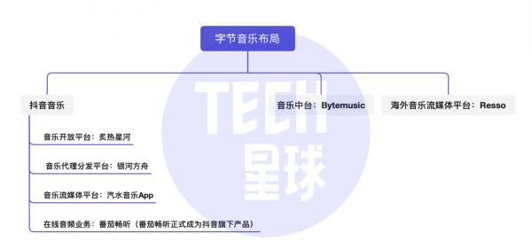 随后,字节再度加码多个音乐项目,首先是打造了自己的音乐中台“Bytemusic”,为自家的音乐业务赋能,此外,抖音还将在线音频产品“番茄畅听”正式纳入旗下产品矩阵,并成立了全新的音乐代理分发平台“银河方舟”,切入音乐代理和发行赛道,再加上近期上线的音乐开发平台“炙热星河”和在线音乐流媒体平台“汽水音乐”。至此,字节拥有了一条完整的在线音乐产业的链路闭环,打造出一个比此前更加全面的音乐商业模式。