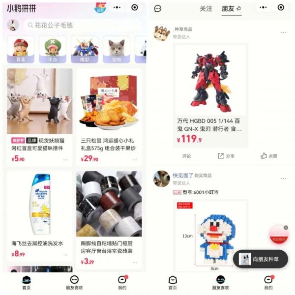 某大厂产品经理也在社交平台上称,他发现小鹅拼拼百货模式跑不通之后,切换到了潮玩赛道,“竞品从拼多多变成了B站”。