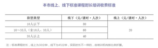 从收费标准可以看出,各种班型的线上收费都为每人次每30分钟20元。以新东方的高中精品课程为例,一次两个半小时的课程应收费100元,一个月四次课程则为400元,和实际收费(不参加优惠活动)的1100元相差甚远。对此,刺猬公社向海淀教育求证,尚未得到答案;向北京教育求证,尚未拨通电话。
