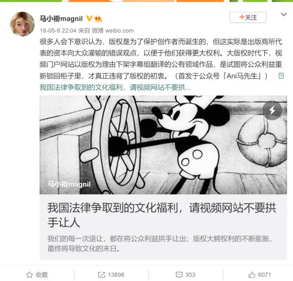 但实际情况是,即使作品并非商业用途,内容创作者的日子在版权高压下都不太好过。作为个人字幕翻译者,“马小褂”曾有一系列「动画史经典翻译计划」,本意是通过介绍这些在动画历史上留下过浓墨重彩的作品,让大家了解世界各国的动画风格与审美渊源,但从17年 11 月起,她新投的稿件经常会被网站以「版权原因,该视频不予审核通过」为由拒收。以及拥有更多观众的影视二创博主,他们常常会和自己的粉丝解释,“为了防止被卡,我甚至没有带任何标签,连封面图都用的其他的,但还是通过不了。”