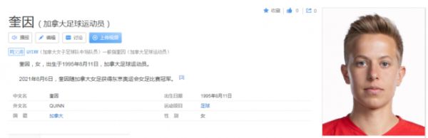 月月鸟去查了一下,这位奎因司职中场,在2020东京奥运会赢得了女足金牌,并且曾经公开承认做过变性手术。