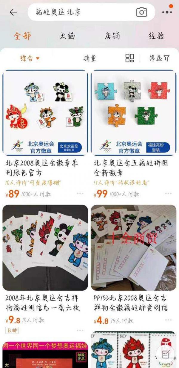 所以,在团队小伙伴阿玖看来,这类商品并不存在真正意义上的“冷却期”,即便是如今,她在互联网上仍旧可以看到有人晒福娃,在淘宝上面搜索相关词语,也能找到不少的店铺,其中不乏月销破千的商品。相信就算十年之后,也会有人po出自家冰墩墩的美照。