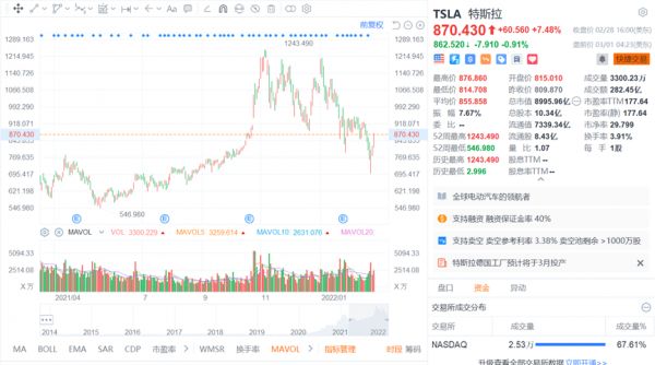 要知道在这个投票尚未截止,抛售也没有详细计划出炉之时,特斯拉的股价就开始山崩了,2021年11月8日和11月9日两天,特斯拉股价暴跌16.25%。而在埃隆·马斯克发起投票的前一天,2021年11月5日,特斯拉的股票创下了历史新高1243.49美元。