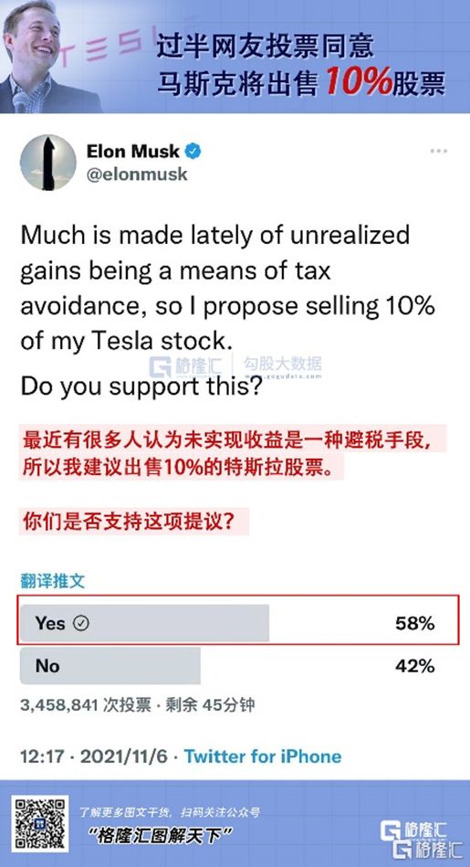 按照2018年埃隆·马斯克与美国证监会达成的和解协议约定,埃隆·马斯克发布的包含重要消息的推文都需要经过特斯拉律师的审核,2021年埃隆·马斯克发布的这条民意调查明显含有重要消息,但是这样离经叛道的推文是否真的通过了特斯拉律师审核,引来了无数猜测。