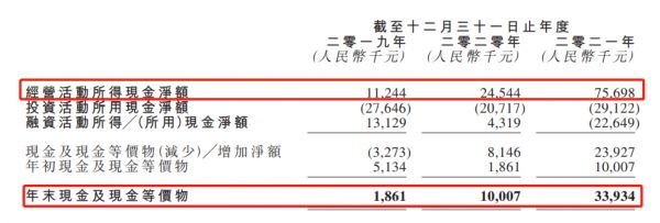 从整体现金流水平来看,虽然现金流总额不断增长,但整体规模仍比较小。而这或许也是其多次闯关港交所“补血”的一大原因。