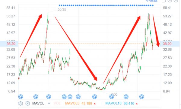 将欣旺达的股价走势时间线拉长,可以发现,这家公司的股价曾坐了两轮大过山车。上涨时,可以三年时间内疯狂飙涨近6倍;下跌时,也可以在三年时间内大幅回撤逾80%。