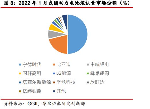截至今年一月份,国内的动力电池装机量的市场份额中,排第一位的依旧是宁德时代,占据的市场份额超过半壁江山,其次是比亚迪。而更多的二线动力电池厂商们,则在拥挤地瓜分剩余不多的蛋糕。