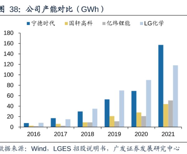 对比来看,2020年,宁德时代在产能上还不及LG新能源。而至去年,宁德时代的产能已经达到约160GWh,超越LG新能源,是亿纬锂能、国轩高科等二线锂电池厂商的三倍左右。