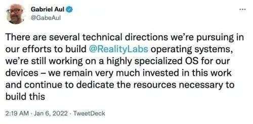 实际上,今年一月初,The Information已经就该团队的解散爆料过一次,但当时Meta旗下的现实实验室(Reality Labs)副总裁“光头哥”Gabriel Aul就在个人推特上坚决否认了该爆料,并表示Meta目前是在发展而不是压缩该团队的规模。