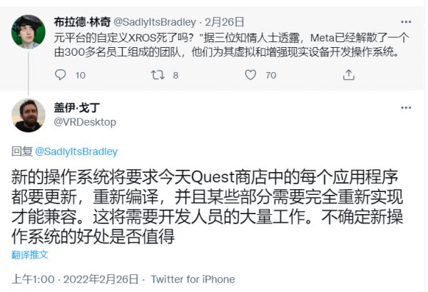 也有网友认为,即便XROS顺利出炉,如何让数量巨大的VR应用重新适配,也是个大问题。