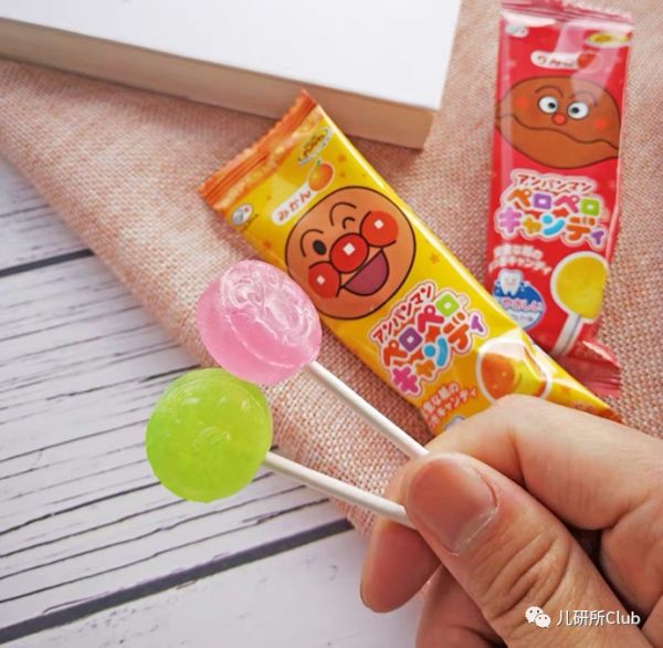顺应健康、少糖的不二家联名经典日本动画面包超人,推出了一款护齿水果棒棒糖。不同于贝亲的添加木糖醇,不二家在棒棒糖中添加茶多酚,实现预防儿童龋齿。