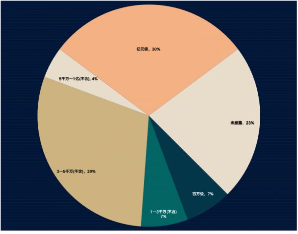 当然,从单个项目融资金额上看,投资机构还是将天使轮/种子轮的金额控制在5000万元以内;而到了A轮则不同,在17起A轮融资中,3起金额未披露,9起金额都在5000万以上,7起过亿,而仅有5起。