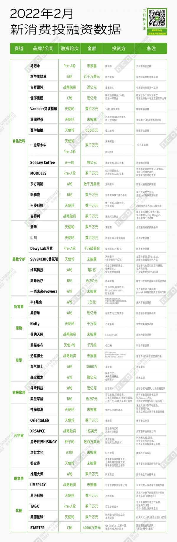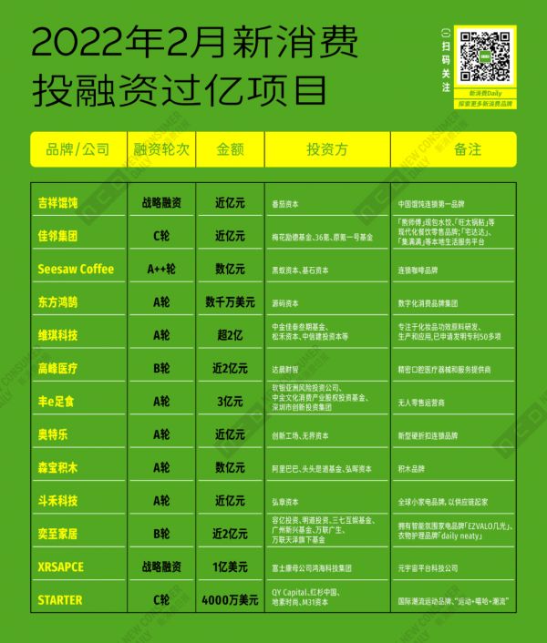 2月新消费投融资数据汇总