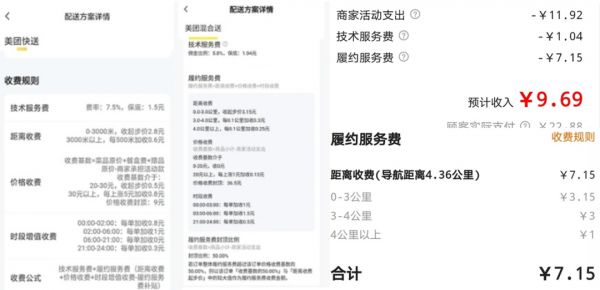 此次调整中,美团主要是对技术服务费进行了限制。但雷达财经注意到,社交媒体平台中有多个商家晒单指出,美团施行费率新规后,履约服务费才是抽成的“大头”。