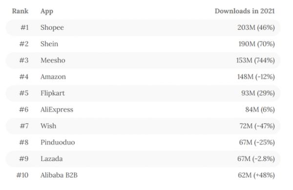 直到今年年初,一则公开数据让Lisa吃惊起来——市场研究机构Apptopia的最新数据显示,Shopee已成为2021年全球购物应用下载量排名第一的电商平台。