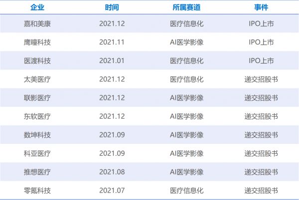图2 2021年医疗AI领域IPO事件