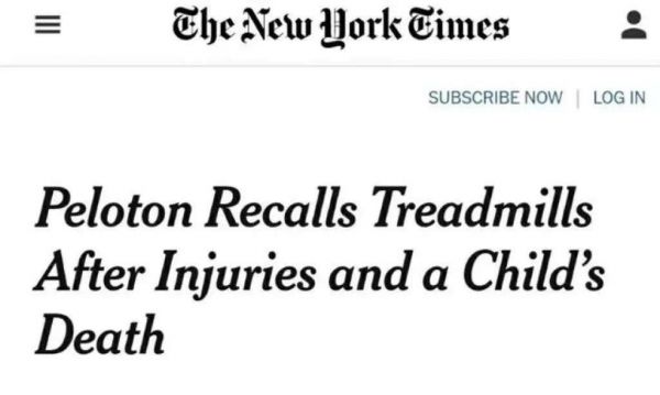 (《纽约时报》报道Peloton产品致儿童死亡)