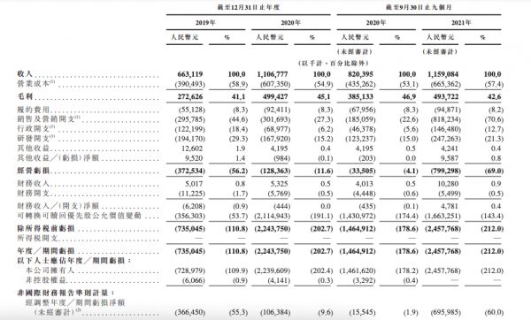 Keep招股书显示,2019年、2020年及2021年前三季度,其营收分别是6.63亿元、11.07亿元、11.59亿元,其中2020年的同比增速高达66.9%。