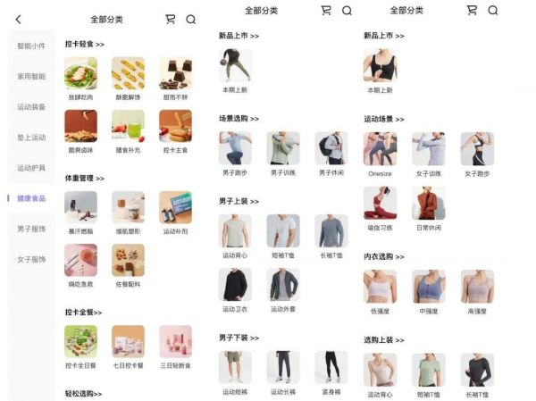 目前,Keep的商城中包含运动装备、健康食品、男女服饰等8个大类,82个细分小类,几乎涵盖居家健身的吃、喝、穿、用全部领域。