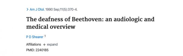 6)Shearer PD. The deafness of Beethoven: an audiologic and medical overview. Am J Otol. 1990 Sep;11(5):370-4. PMID: 2240185.