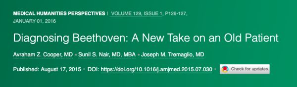 2)Cooper AZ, Nair SS, Tremaglio JM. Diagnosing Beethoven: a new take on an old patient. Am J Med 2016;129:126–127.