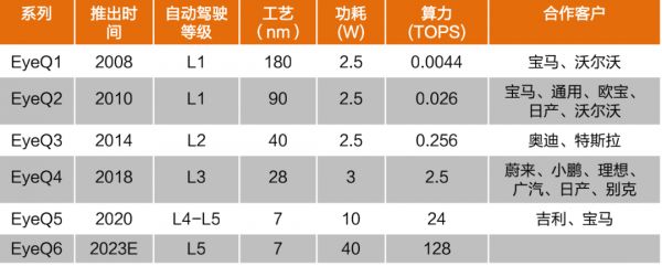 Δ Mobileye EyeQ系列。资料来源:天风证券