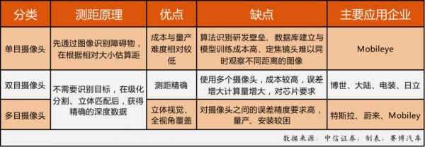 随着单目摄像头的发展,业内也发现了其对于特殊场景处理困难的劣势,并且Mobileye的垄断地位也使得新入局玩家希望通过其他技术路径实现弯道超车,双目摄像头、多目摄像头等技术在近年快速发展。